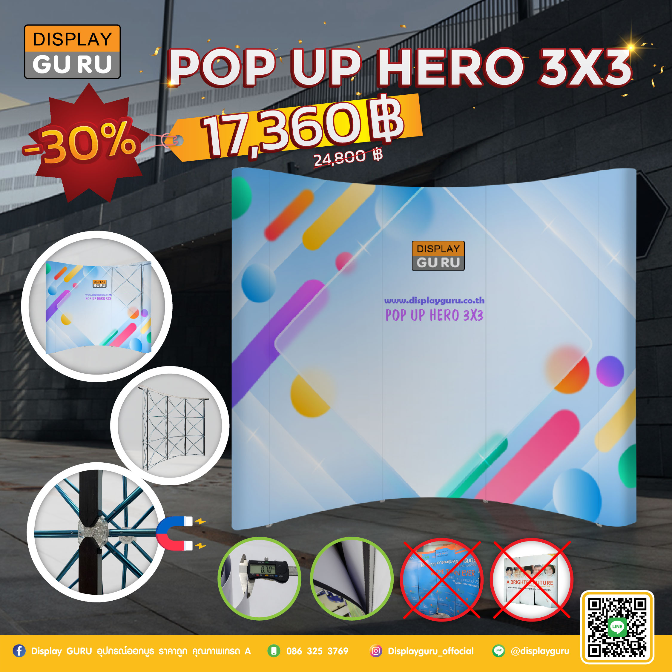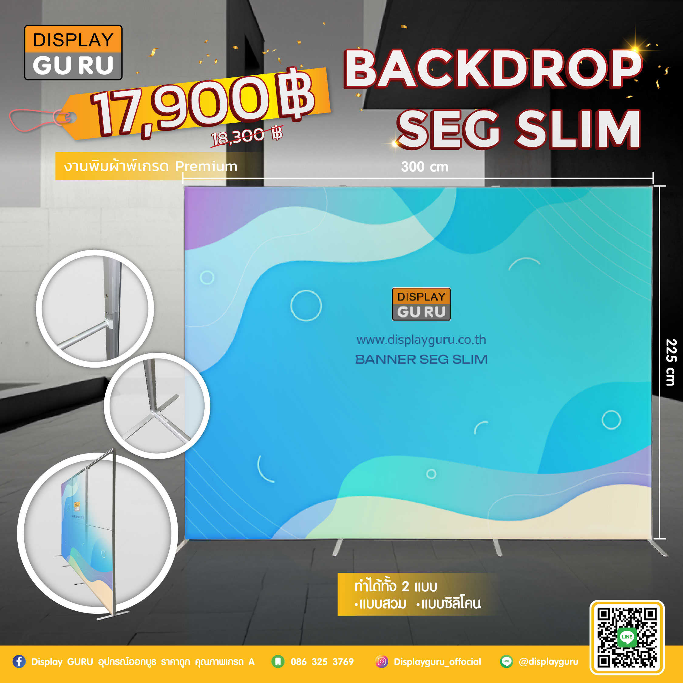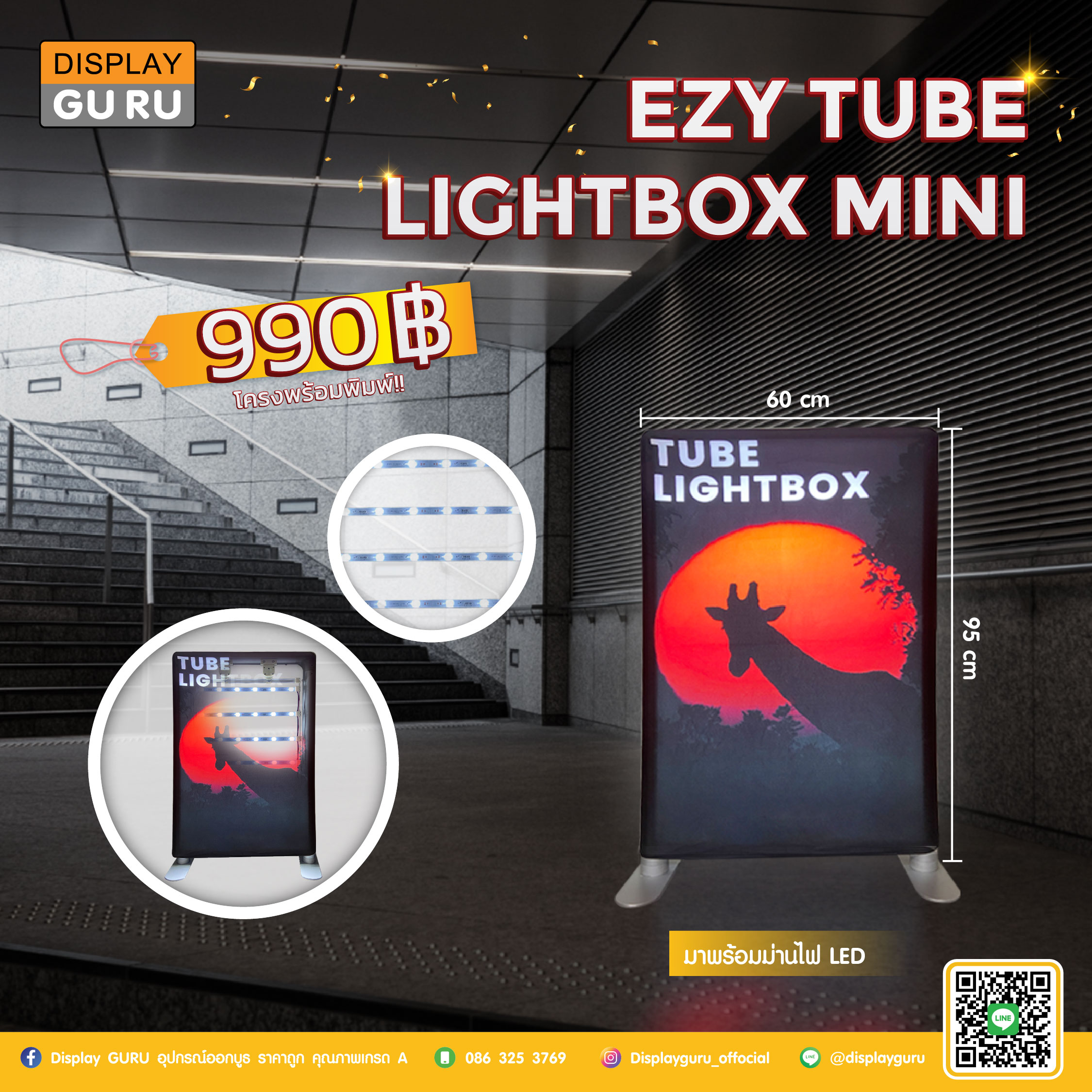 โครงอลูมิเนียมแบบต่อท่อน มาพร้อมกับม่านไฟ LED ใช้งานได้ทั้งแบบ Lightbox และ ไม่ Lightbox