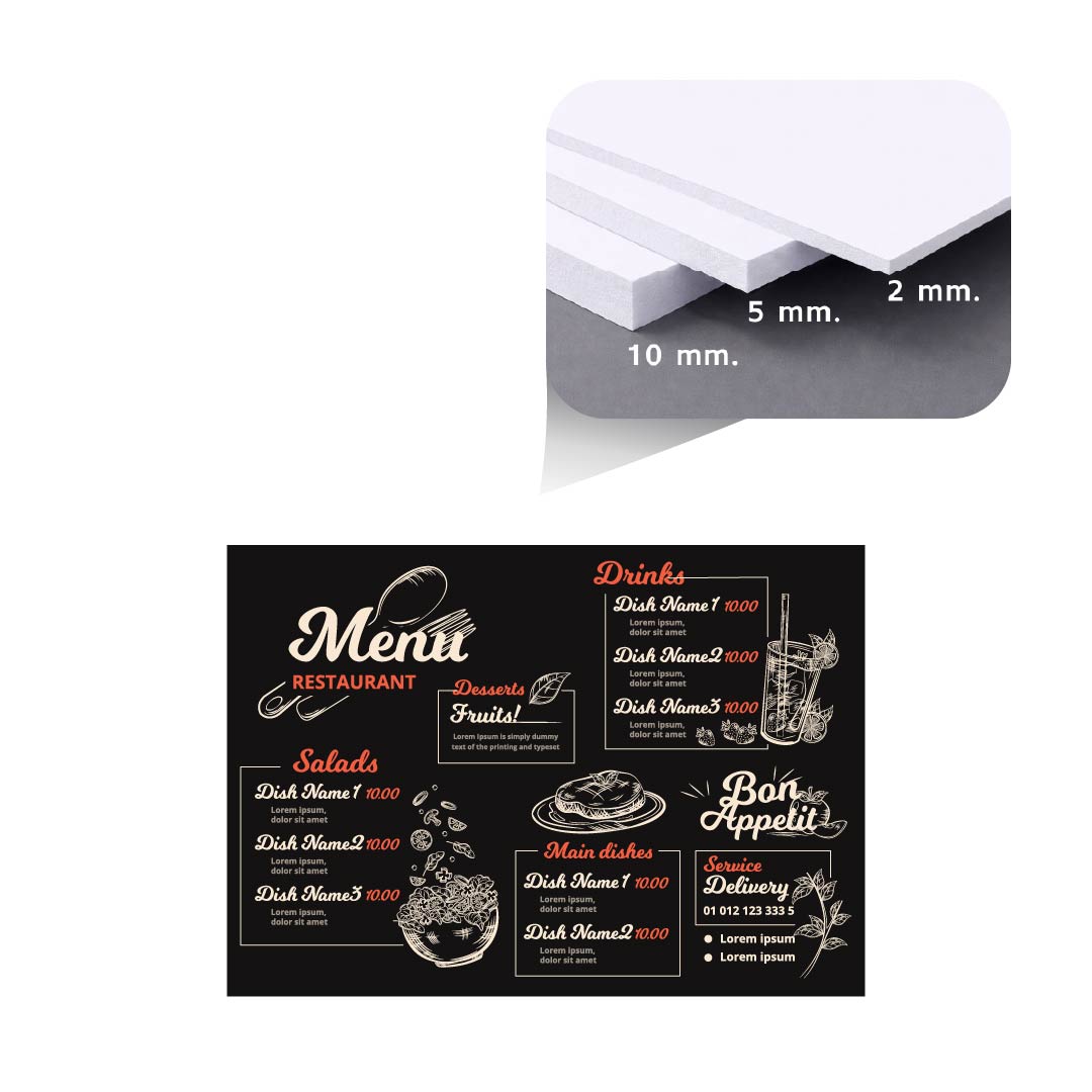 …– ป้ายประชาสัมพันธ์ / ป้ายโปรโมชั่น / ป้ายเมนู / ป้ายชื่อร้าน / ป้ายแสดงข้อมูลพื้นฐานต่างๆ