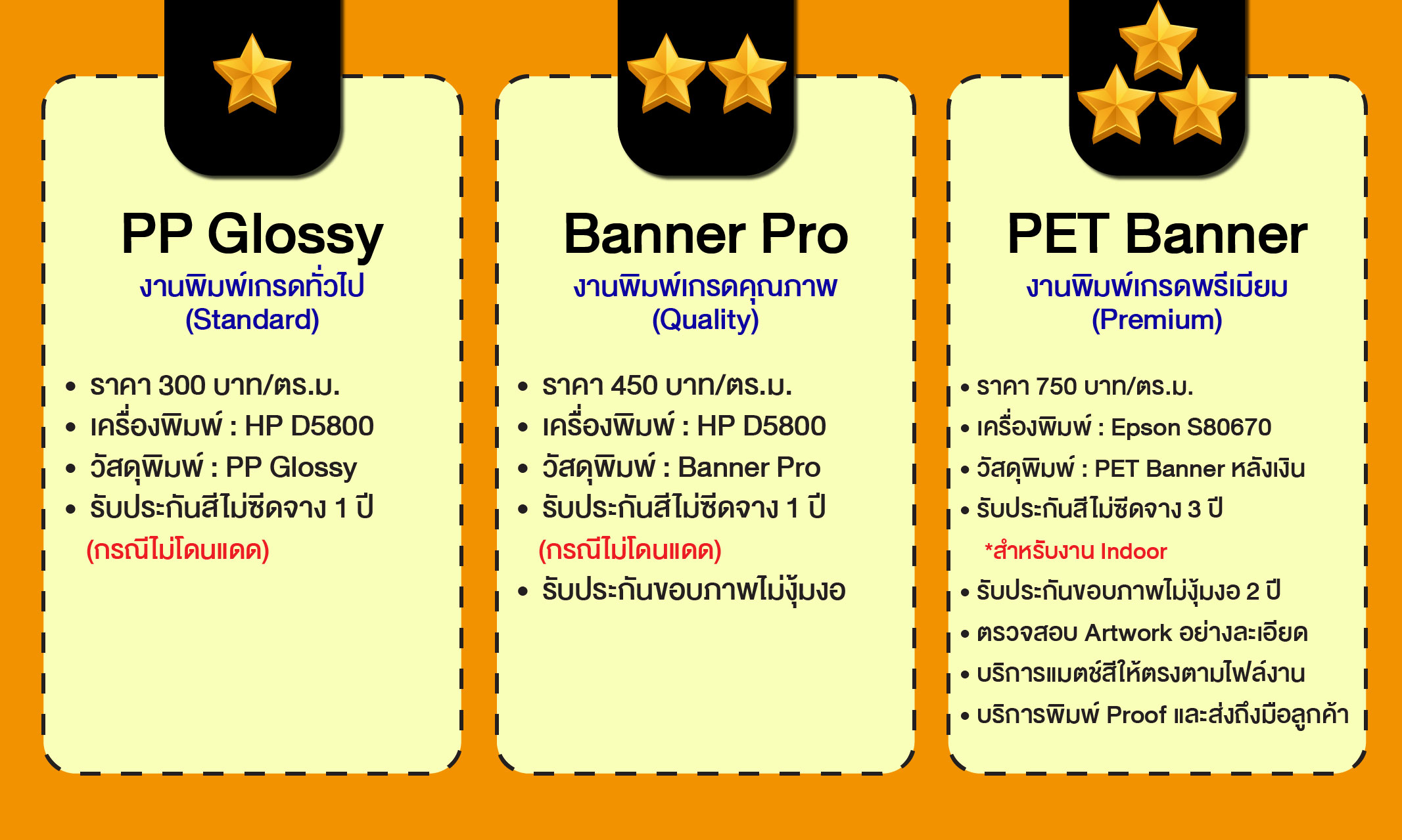 …3.1) งานพิมพ์เกรดทั่วไป รับประกันสีไม่ซีดจาง 1 ปี (กรณีไม่โดนแดด) **ไม่รับประกันขอบภาพงุ้มงอ**