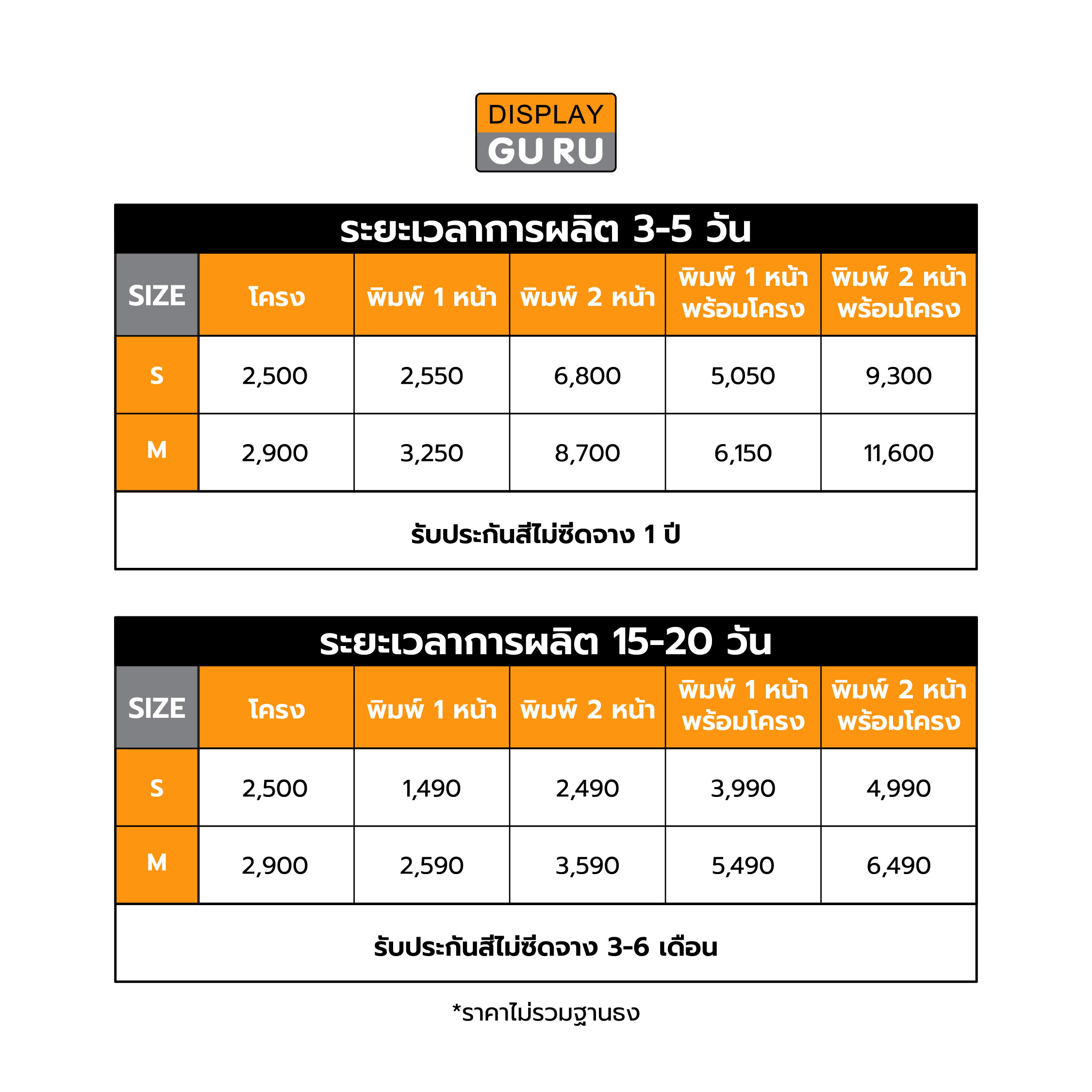 …8) รับประกันโครงสร้าง 1 ปี และรับประกันงานพิมพ์สี ทนแดด 6 เดือน